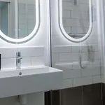 Un endroit idéal pour quelques nuits, je me sentais comme chez moi. L'hôtel était très propre et l'emplacement et les chambres étaient exceptionnels. La pièce comprenait une salle de bain bonne qu'on a apprécié. Elle était sympa et le lit était douillet. Un immeuble grand dans un quartier extrêmement confortable.